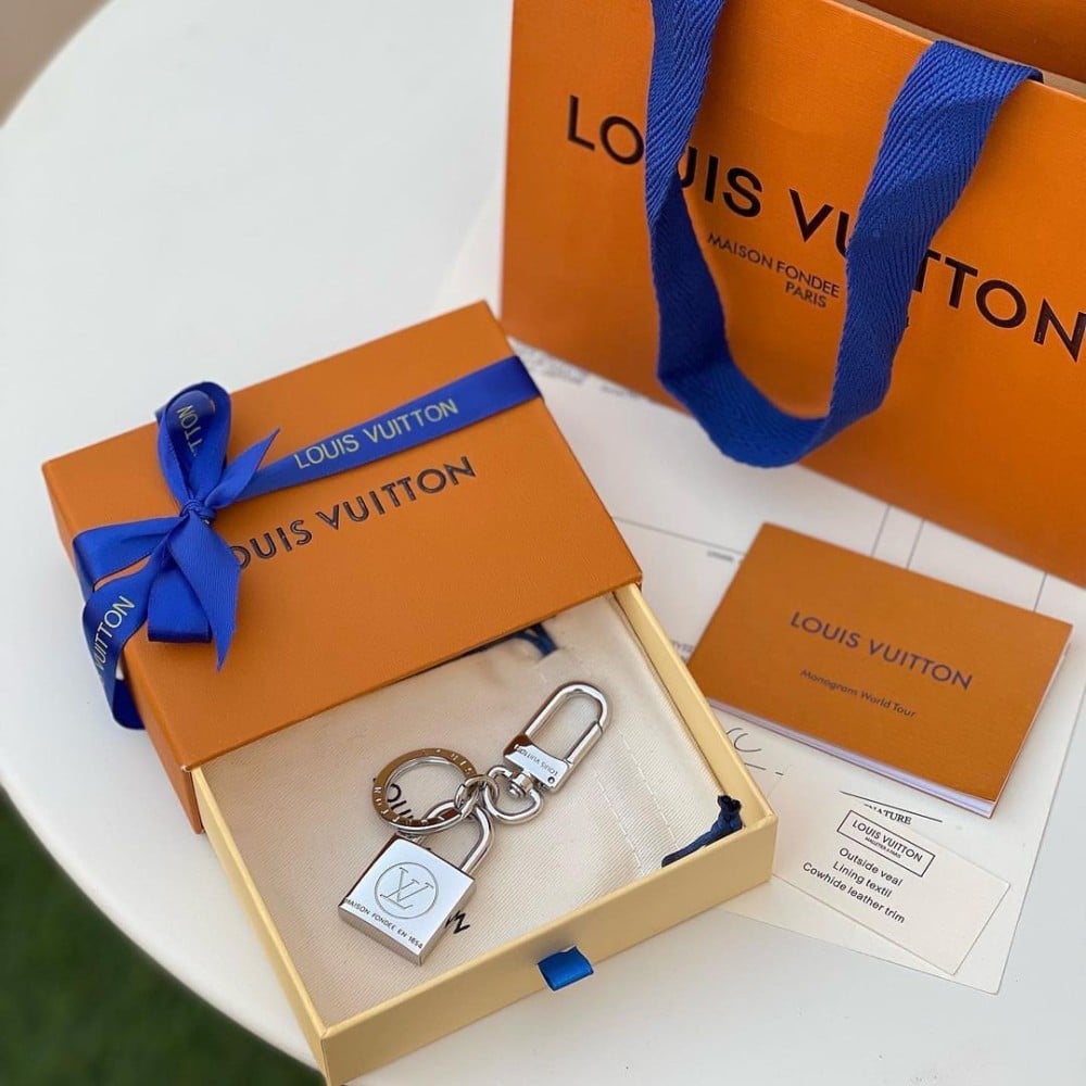 تعليقة مفاتيح لويس فيتون ستانستيل ، تأتي مع ملحقات الماركة فاخرة بلونين ذهبي وفضي .