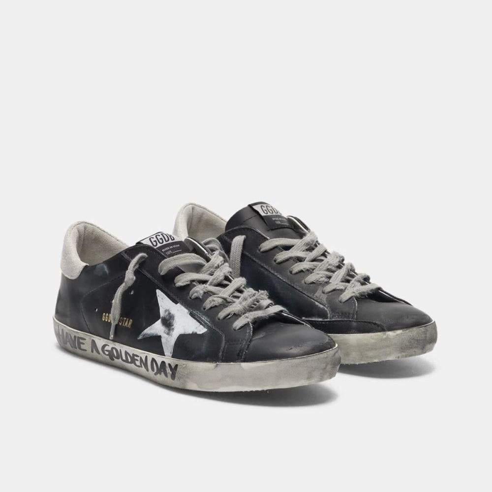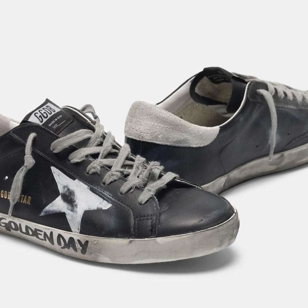 حذاء سنيكرز جولدن جوس سوبر ستار المميز ، تصميم مميز يميزك عن غيرك يأتي بلمسات الموضة الفريدة والفاخرة ، لمحبي التفرد بحيث يتميز بتفاصيل باهته تجعله كأحد القطع المستعملة والمفضلة لدى الكثيرين ، الحذاء مصنوع من الجلد الإيطالي الفاخر والمميز حيث يأتي عليه شكل النجمة المميز والتي أشتهرت بها الماركة ، أرضية الحذاء منخفضة تناسب مظهرك الجذاب .