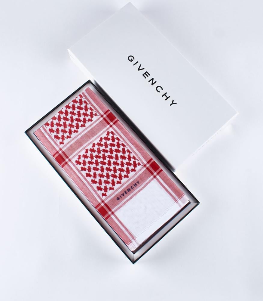 شماغ انجليزي من جيفينشي كلاسيك 2024 تصميم مميز وتطابق اطراف بالمللي بالاضافه للشكل الفخم ولون جذاب وتصميم مميز وجودة عالية ولون ثابت .