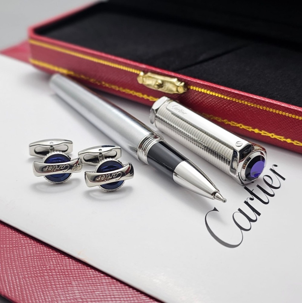 قلم وكبك موديل سداسي عريض بأكثر من لون من ماركة كارتير مع الملحقات التابعة للماركة .
